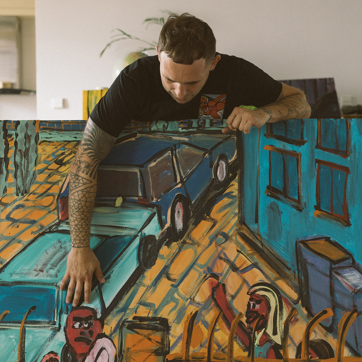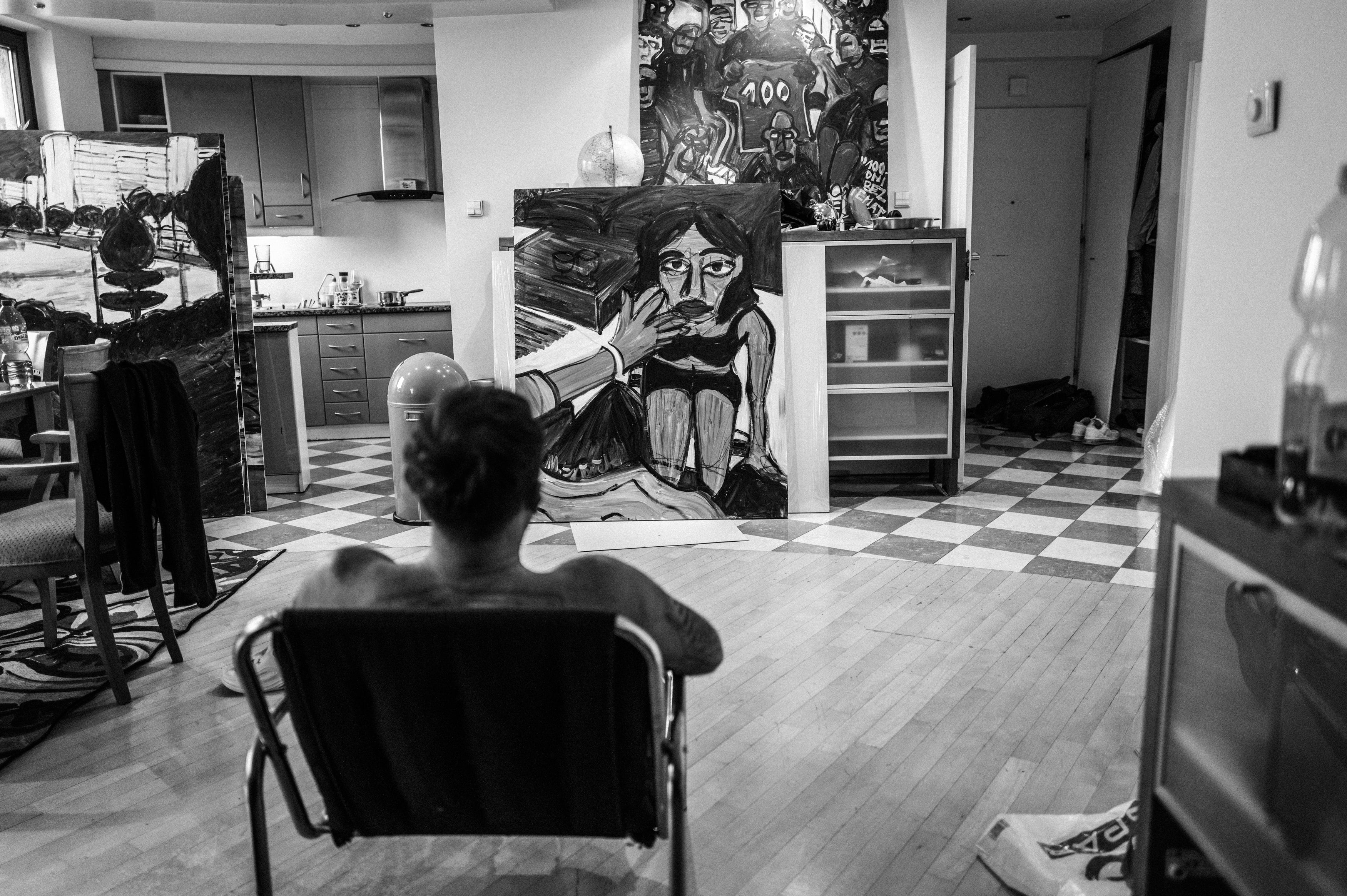 Na jego obrazach jest tłoczno od ludzi, miejska tkanka mieszających się ze sobą i pozostających w różnych relacjach kobiet i mężczyzn przeraża obnażając przywary i z przymróżeniem oka traktując naszą czarną stronę mocy. Mimo, że Michał często przedstawia wakacyjne klimaty, plaże, knajpy, dyskoteki, to jest wersja rozrywek, których chcielibyśmy uniknąć. W jego przedstawieniach dużo podejrzanego światka, który na ścianie pozostaje dla nas bezpieczny, będąc jednocześnie fascynującym. Tłum ludzi i tłum kolorów, wyrazisty kontur i krzywe spojrzenia, nonszalancka kreska od niechcenia opowiada historie, których lepiej być niemym świadkiem. Malarstwo współczesne, autentyczne, z rozmachem i tym charakterstycznym DNA, wobec którego trudno przejść obojętnie. Kawał fajnej męskiej sztuki z poczuciem humoru.
